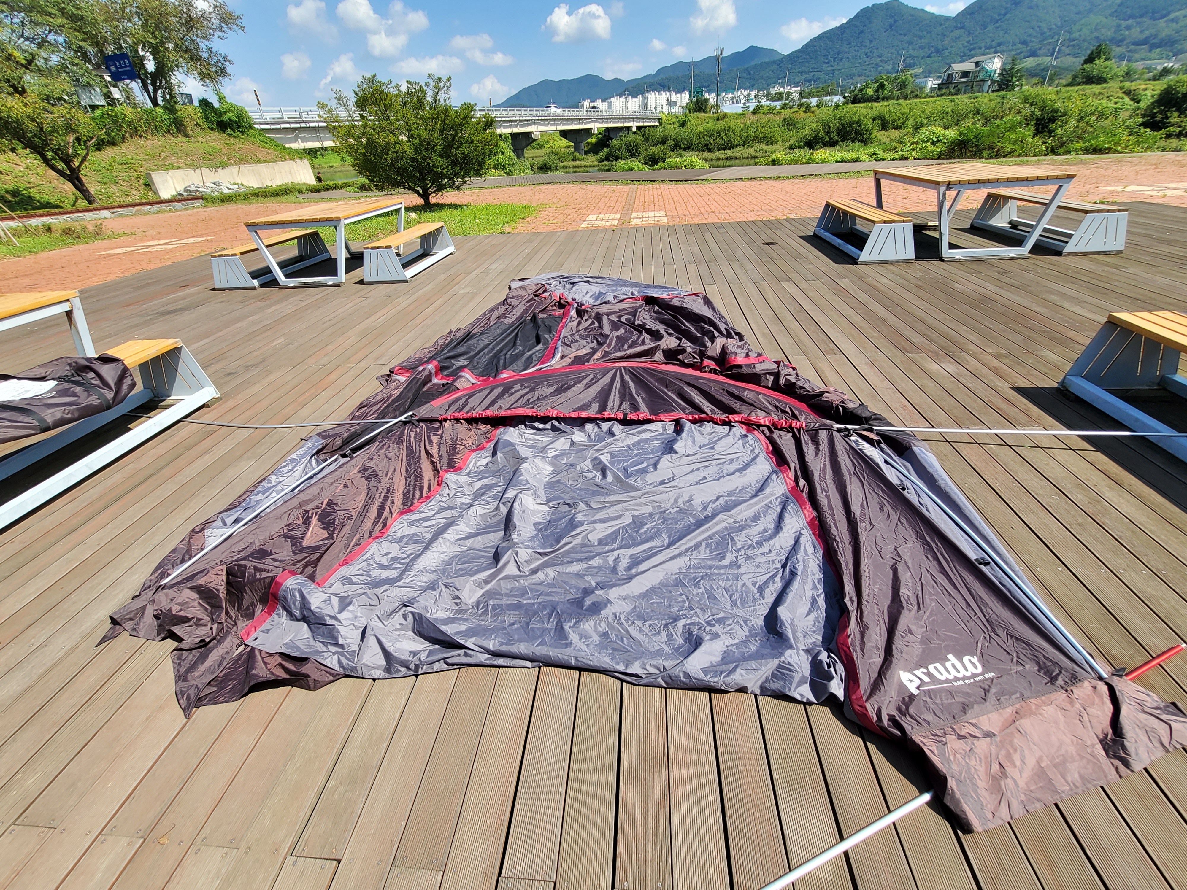 집근처 유원지에 나가 텐트를 설치해 봤다..